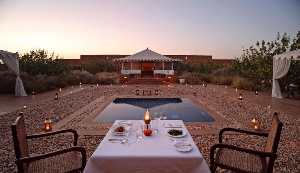 With its sand dunes golden, under the azure sky, palaces and forts, tales of valor they hold tall and high.